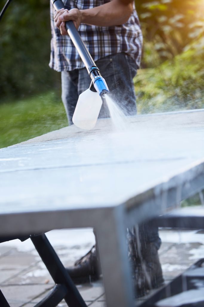- Kraftvolles Reinigungsmittel zur Entfernung von unerwünschtem Schmutz und Flechten auf Platten im Außenbereich