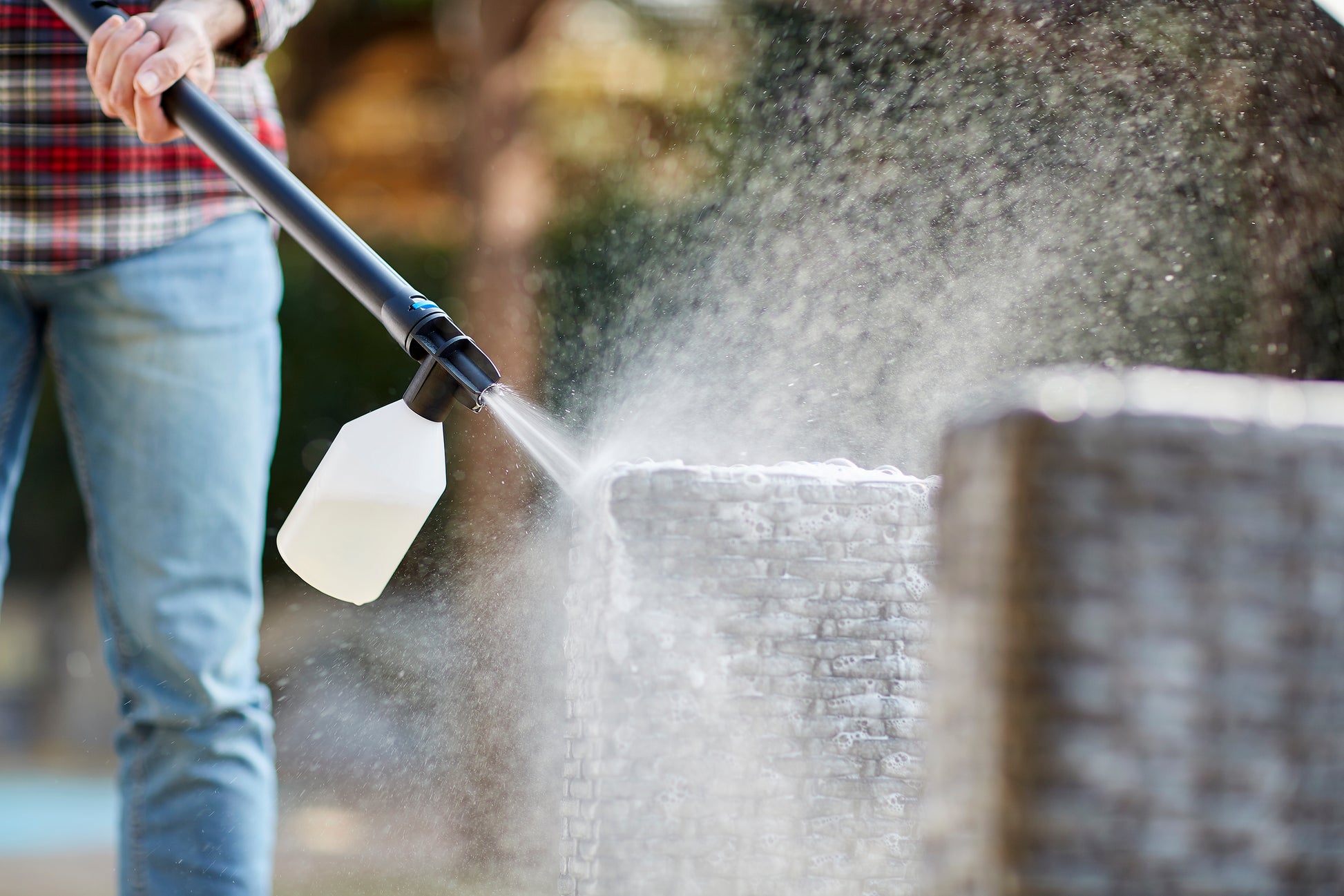 - Pulverizador de espuma (450 ml) incluido - Utilice el detergente que desee y sepárelo de la lanza en cualquier momento para evitar el desperdicio.