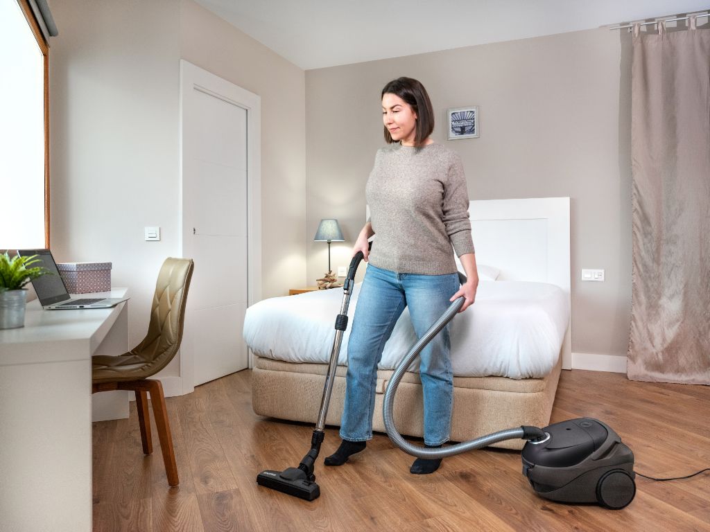 Una gama de aspiradoras cuyo pequeño tamaño no compromete su potencia. Eficaz en todos los hogares, pero especialmente en aquellos donde el espacio es preciso. La Nilfisk One viene con un cinturón especialmente diseñado que sujeta la manguera contra el aspirador, facilitando su almacenamiento en espacios modestos. Este pequeña aspiradora tiene una gran potencia, una potente succión y una buena recogida de polvo tanto en moquetas como en suelos duros. Para las tareas que no requieren de toda su potencia, la One tiene una velocidad de motor ajustable para que puedas optimizar su eficiencia en cada tarea.