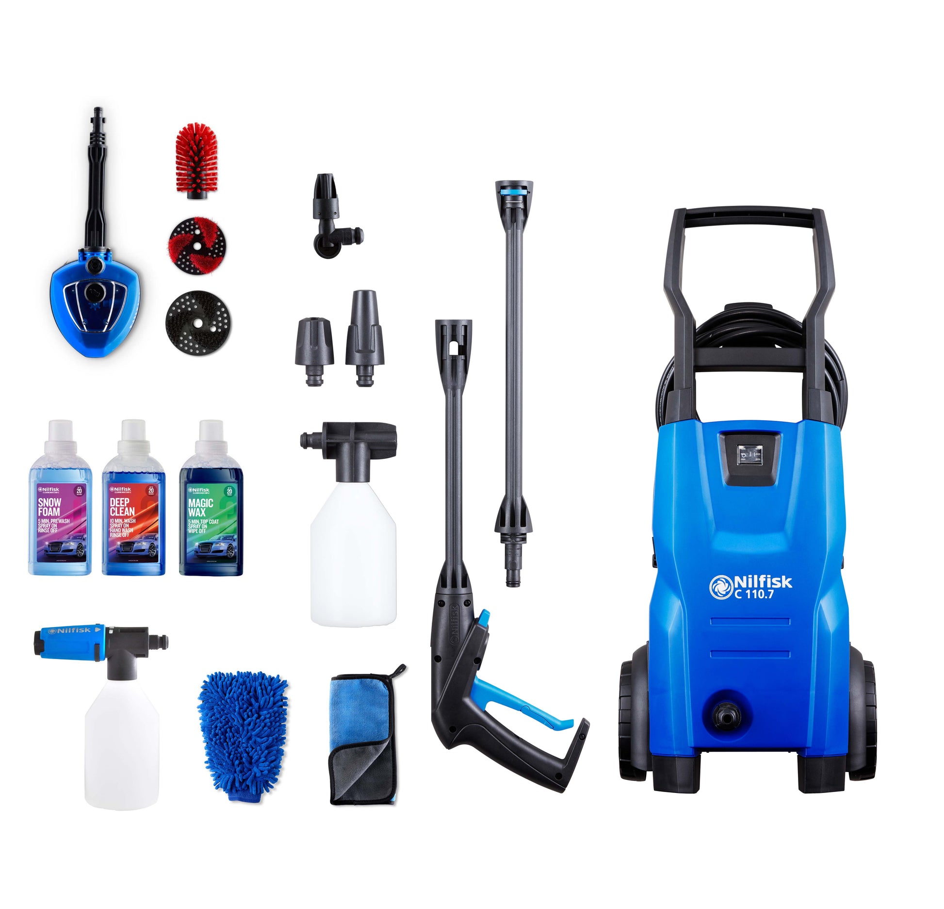 Accessoires standards inclus : Pulvérisateur mousse , Buse à jet rotatif Rough & à jet réglable Gentle, Débouche buse