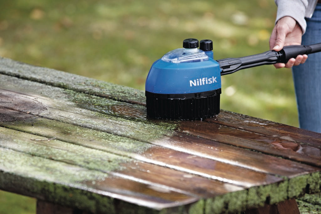 Maak het verwijderen van hardnekkig vuil een fluitje van een cent met het accessoire tuinborstelkop, die beschikt over stijve borstelharen, waardoor het de ideale keuze is voor het aanpakken van hekken, houten meubels en ander materiaal buitenshuis. Kan op uw machine worden aangesloten met behulp van het multiborstel-toebehoor.