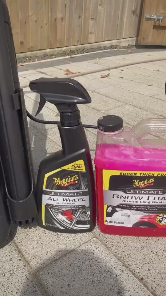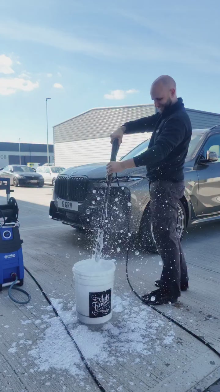 Breng een laag Car Combi reinigingsmiddel aan met onze schuimsproeier. Het schuim maakt vuil los en beschermt de lak tijdens het wassen.