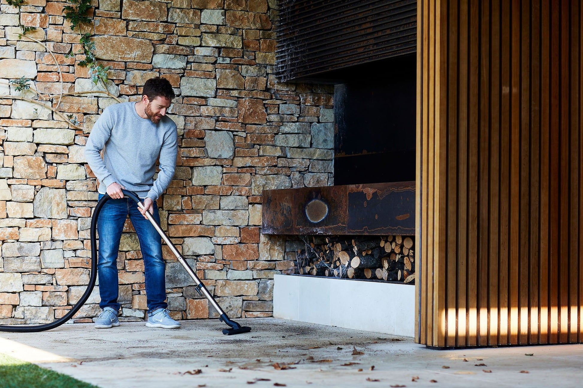 Denne våd-/tørsuger i god kvalitet har en beholderkapacitet på 18 liter og en motor på 1200 watt, hvilket garanterer en effektiv rengøring og fjernelse af snavs inde og ude. Den har integreret stikkontakt, der kan bruges med elværktøj, så du kan gøre rent undervejs når du bruger elværktøj, hvilket gør den til den ideelle maskine til dem, der ofte udfører gør-det-selv-opgaver. En ekstra blæsefunktion gør det muligt at fjerne støv og snavs fra hjørner og svært tilgængelige steder.